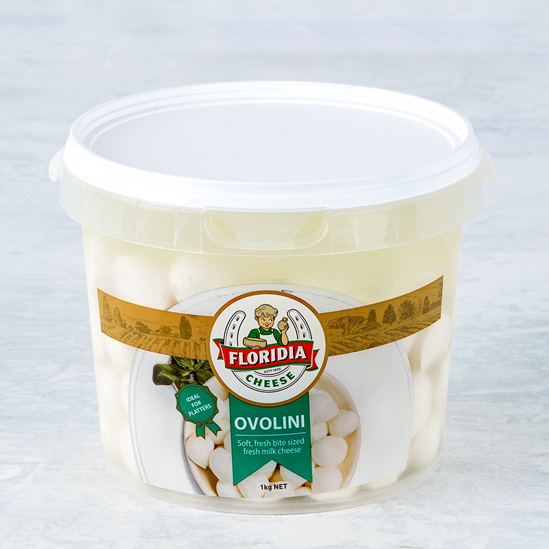 Floridia Bocconcini, Fiore di latte, Ovolini and Pearls are natural cheeses made from fresh pasteurized cow’s milk. Made from Mozzarella (pasta filata) are available in various sizes depending on your preference. White in colour, semi-soft, rindless and unripened they are packed in tubs filled with brine. These bite-sized cheeses have a refreshingly delicate and creamy aroma with an elastic texture and consistency. Best consumed fresh, Italians enjoy drizzling with Extra Virgin Olive, as a centrepiece in salads or sliced on a pizza.
